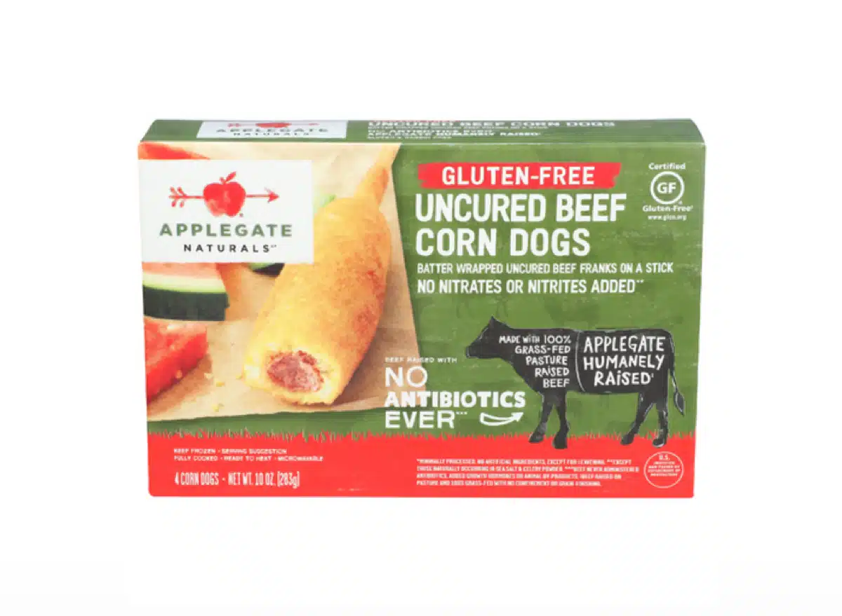 Applegate Gluten-Free Uncured Beef Corn Dogs are crafted from real grass-fed beef. A Walmart shopper expressed relief, saying, “I was so glad to find corn dogs made with quality ingredients. I thought I’d never have another corn dog again due to the poor ingredients in the typical options.”
